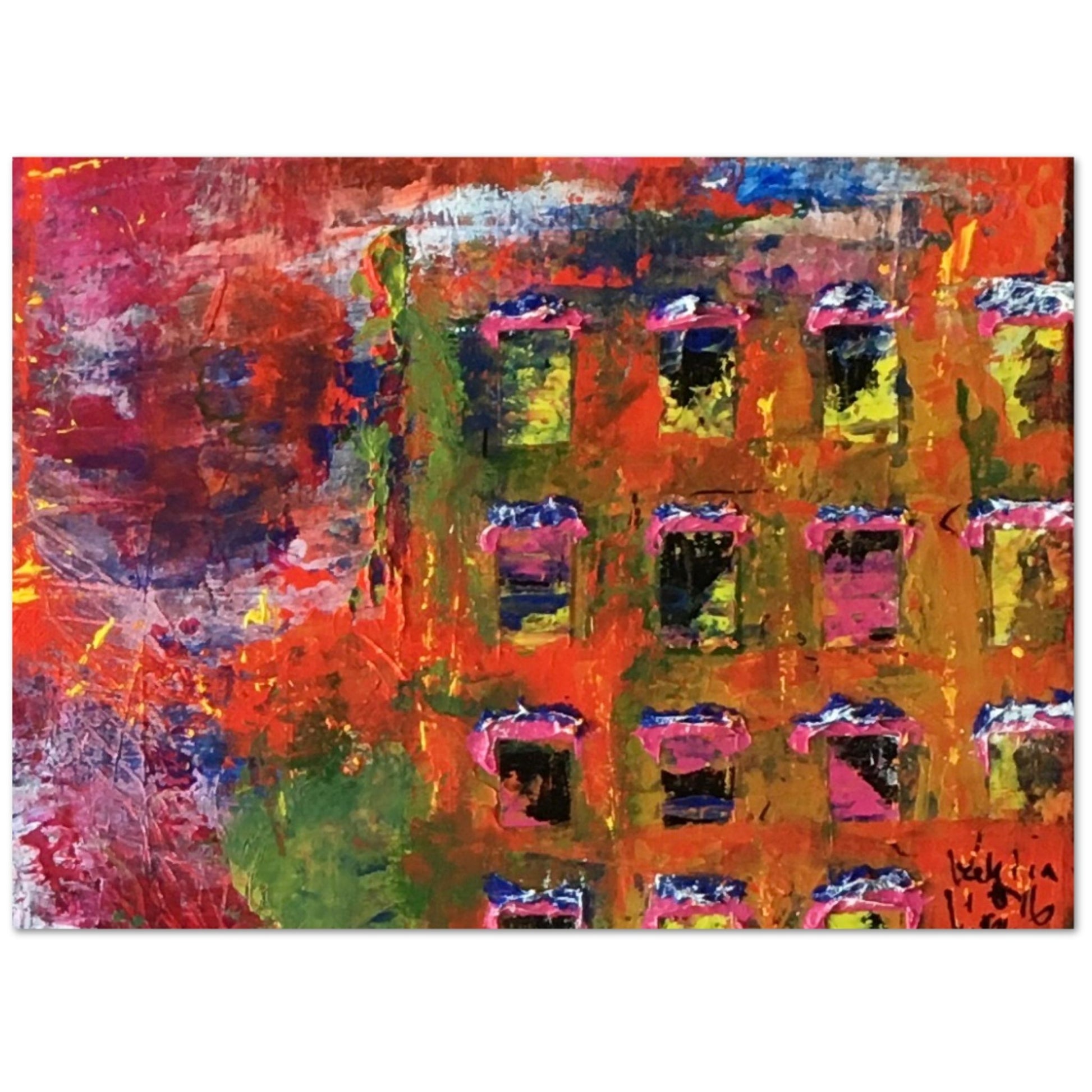 Dit was het eerste schilderij dat ik maakte. Het was een huwelijkscadeau voor mijn zusje en haar fantastische man! Het thema is vanzelfsprekend het huwelijk. Het huwelijkspaar kijkt vanaf de boulevard naar hun eigen toekomst en hoe hun levens samensmelten. Onder andere in dit schilderij zijn zichtbaar de stad en hun kat, maar ook de geestelijke verzegeling van het huwelijk.